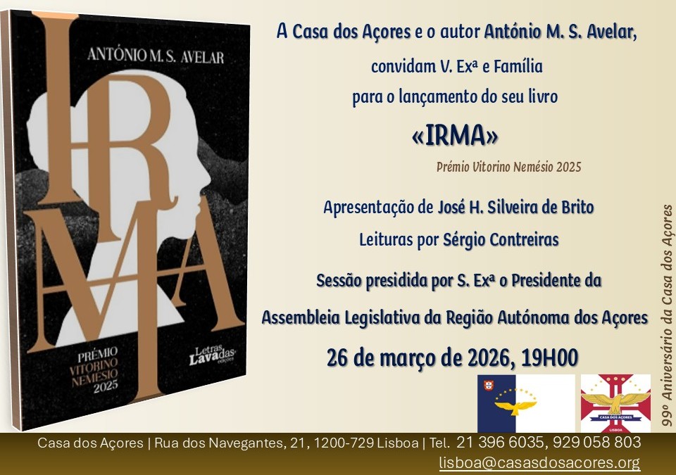 Por ocasião dos cem anos da Casa dos Açores em Lisboa, será apresentada a obra “Irma” do terceirense António Avelar.
